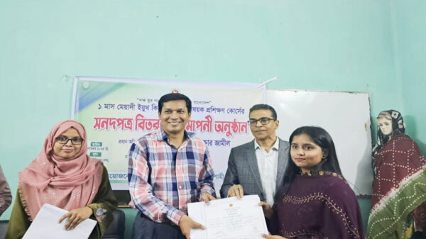 রাজশাহীতে যুব উন্নয়ন অধিদপ্তরের আয়োজনে শেষ হলো এক মাস মেয়াদী ইয়ুথ কিচেন (রান্না) বিষয়ক প্রশিক্ষণ কোর্স। সেই লক্ষ্যে রোববার (২৪ নভেম্বর) বিকেলে জেলা যুব প্রশিক্ষণ কেন্দ্রে সনদপত্র বিতরণ ও সমাপনী
