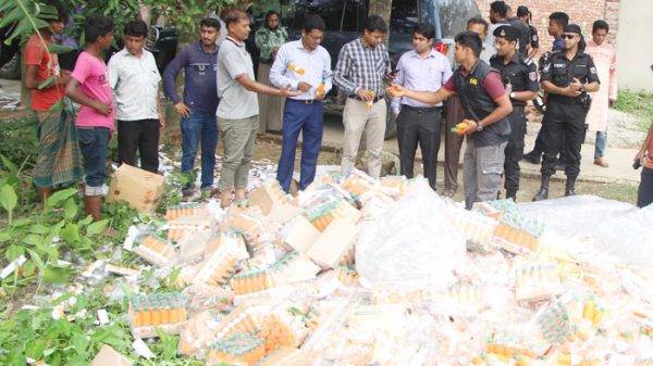 হোসেনপুর প্রতিনিধি: হোসেনপুরে রমজান মাস উপলক্ষে ভেজাল বিরোধী বিশেষ অভিযান চালিয়ে নকল জুস কারখানার সন্ধান পেয়েছে র্যাব-১৪। বুধবার দুপুরে হোসেনপুর উপজেলা প্রশাসন ও র্যাব-১৪ পৌরসভার ৪নং ওয়ার্ডের মধ্য আড়াইবাড়িয়া গ্রামের