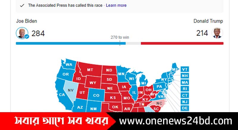 ৪৬তম মার্কিন প্রেসিডেন্ট নির্বাচিত হয়েছেন ডেমোক্র্যাট দলীয় প্রেসিডেন্ট প্রার্থী জো বাইডেন।