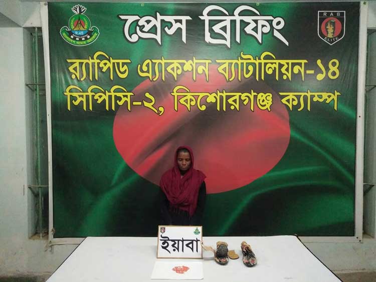 র্যাব-১৪, সিপিসি-২, কিশোরগঞ্জ ক্যাম্পের কোম্পানী অধিনায়ক লে. কমান্ডার, (বিএন) এম শোভন খান ওয়ান নিউজকে জানান, বৃহস্পতিবার বিকাল সাড়ে ৪টার দিকে কটিয়াদী বাসস্ট্যান্ড এলাকায় তারা অভিযান চালিয়ে মুর্শেদা খাতুনকে জিজ্ঞাসাবাদের সময় ওই নারীর পরিহিত জুতা পরীক্ষা করে জুতার ভেতরে অভিনব পদ্ধতিতে রাখা ২০০ পিস ইয়াবা উদ্ধার করেন।